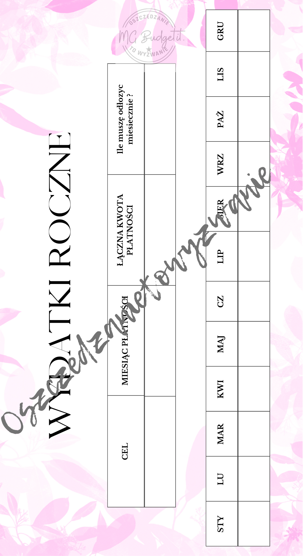 Wydatki czasami potrafią przytłoczyć, zwłaszcza jeżeli wcześniej się do nich nie przygotujemy... Dlatego mam dla Ciebie kartę wydatków rocznych, która pomoże Ci systematycznie odkładać na większe wydatki, jak np. ubezpieczenie OC. Sam decydujesz ile odkładasz i kiedy zaczynasz!