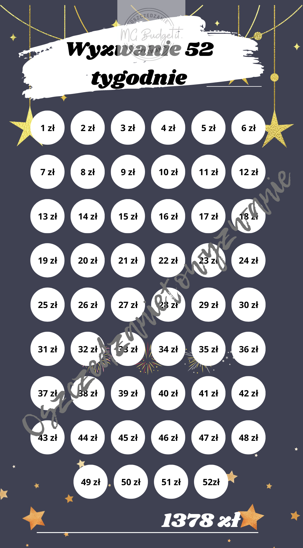 Jedno z moich ulubionych wyzwań, ładna grafika, praktyczne, pozwala oszczedzic duza kwote, polecam dla kazdego zaczynajacego przygode z wyzwaniami